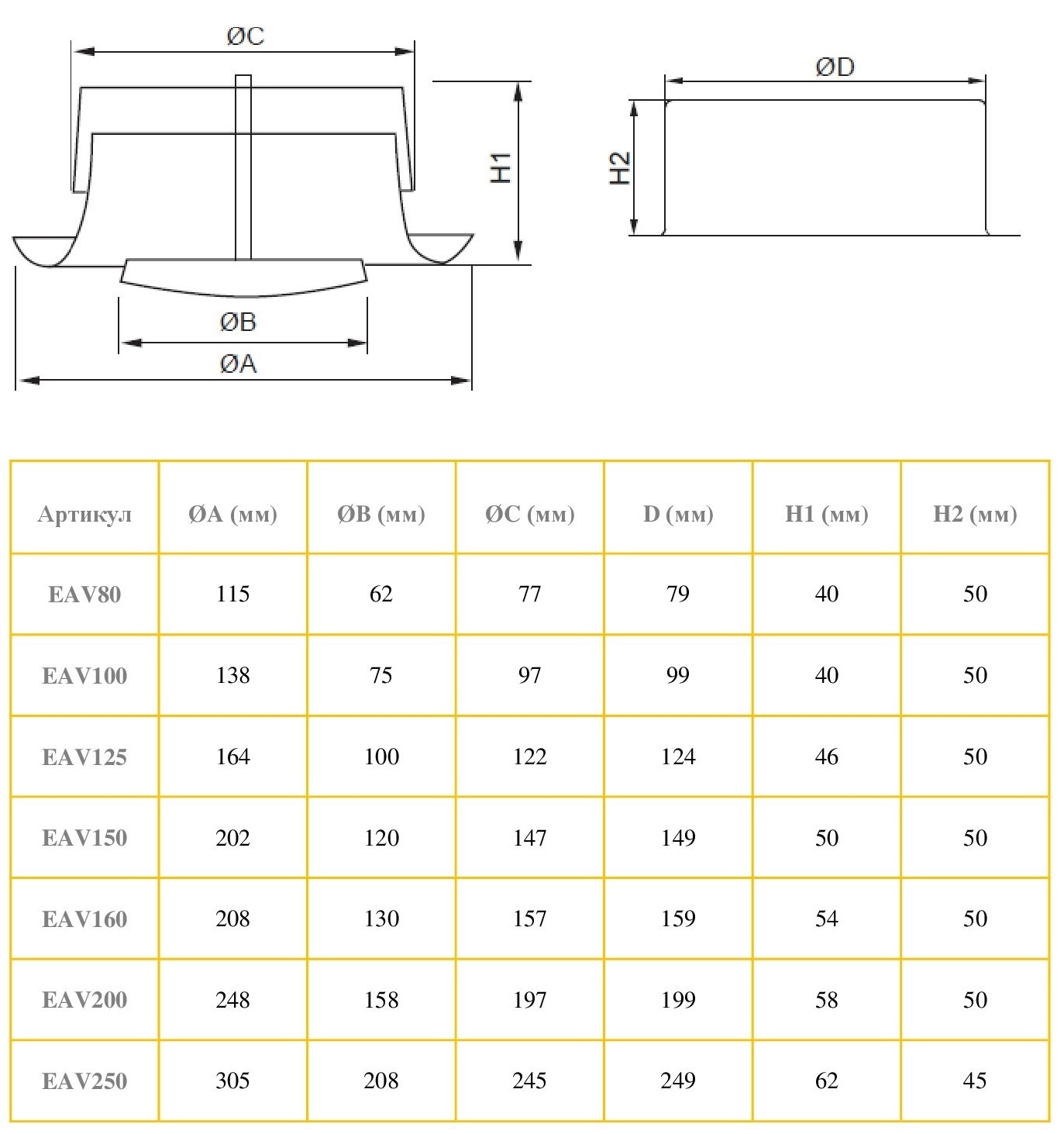 Анемостат вытяжной Aier EAV, круглый, диаметр 80 мм